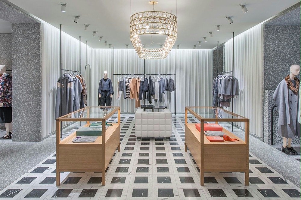 。在整个建筑中都发现了灰色的威尼斯水磨石,但还有一些像皮革、地毯和碳纤维等的元素,增加了一系列房间,每个房间都有不同种类的商品。