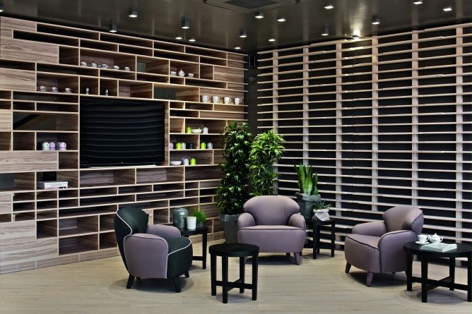 店铺设计采用现代的钢结构和玻璃结构的建筑中,木质,钢材质以及玻璃材质的融合造就一个令人兴奋的空间。 整个空间的装饰以简洁精致和材料的重要性为基础,结合交错复杂的方式与建筑的结构元素,规整又独有现代设计感,让该建筑在风景如画的环境下,因主立面的透明度而形成的光影交织,让自然光线照射在空间里,营造出了一个温暖而舒适的氛围。