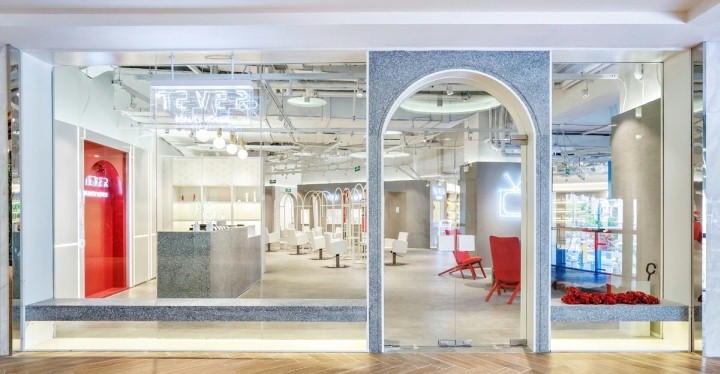 店铺设计 区别于传统的美容院设计,以独特的设计风格和设计理念让人耳目一新。时尚、动态、前卫的元素与品牌文化结合起来,在设计这个沙龙时为顾客创造良好的客户体验。
