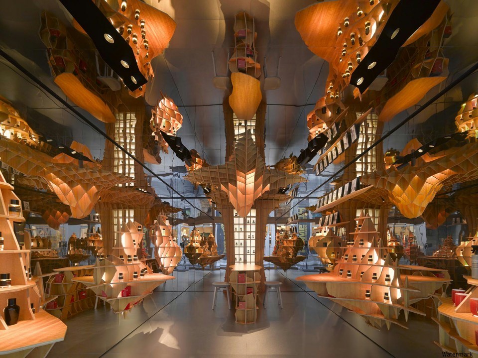 前卫创新新概念店。富有质感的室内元素,让顾客感到惊讶。店的金色让整体变得更加高端神秘,符合了品牌的定位。天花板上有钻石形状的图案,设计了商店的流程,引导游客流畅地从一个房间走到另一...查看详情 -