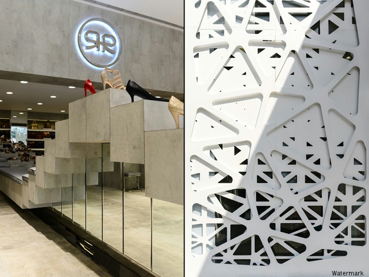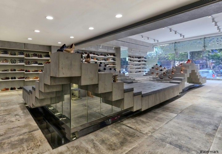 店铺设计特意保留了原始的水泥最自然的质感,整体布局以工业质感的水泥墙面为主,搭配阶梯形式的高低错落方体,以形成视觉上的和谐感。空间都遵循了凸显自然特征为主的设计理念,将自然质朴的氛围完美地融于店铺的空间之中,带来一种毫无违和的清新感受,整体效果以化繁为简为主要设计理念。在色彩上,白灰的搭配,冷色的光的设置,也给人带来一种舒适放松的氛围.