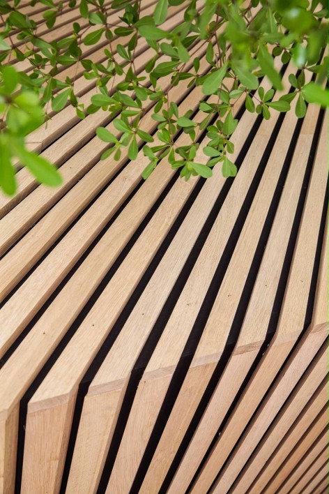 店铺设计将大自然的“绿”意融入其中,将天然、纯粹的概念将其展现,让人眼前一亮,店铺空间中以一颗大树为视觉中心点,柜面天花均穿插原木元素的线条,而墙壁的镜面让整个空间有更空旷的错觉感,打造了一个迷你森林小花园,让生活在这座城市或者是来旅游的人们,在这里都能暂时远离城市的喧嚣,感受这家小店带来的自然绿意。