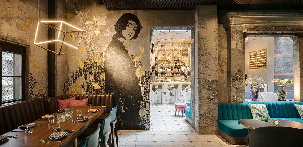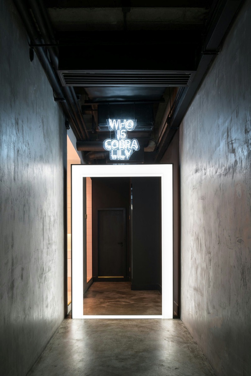 保持原有装饰的拱门,让顾客进入餐厅通过一个秘密通道,戏剧性的入口的一个两层楼的中庭完全浮动的DJ展台。创造了私人腰包可能是秘密的,机密的交易。厕所位于一个长长的,黑暗的走廊尽头,特工题材的描绘,神秘且生动。