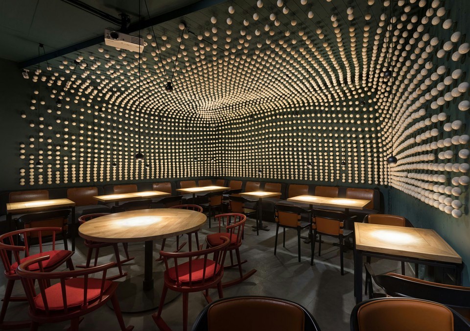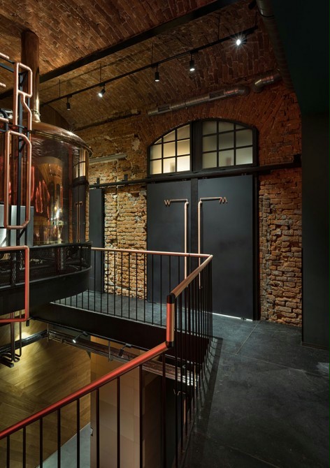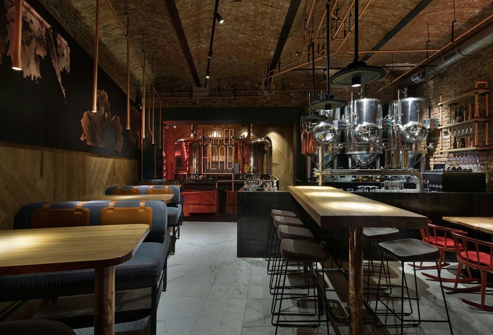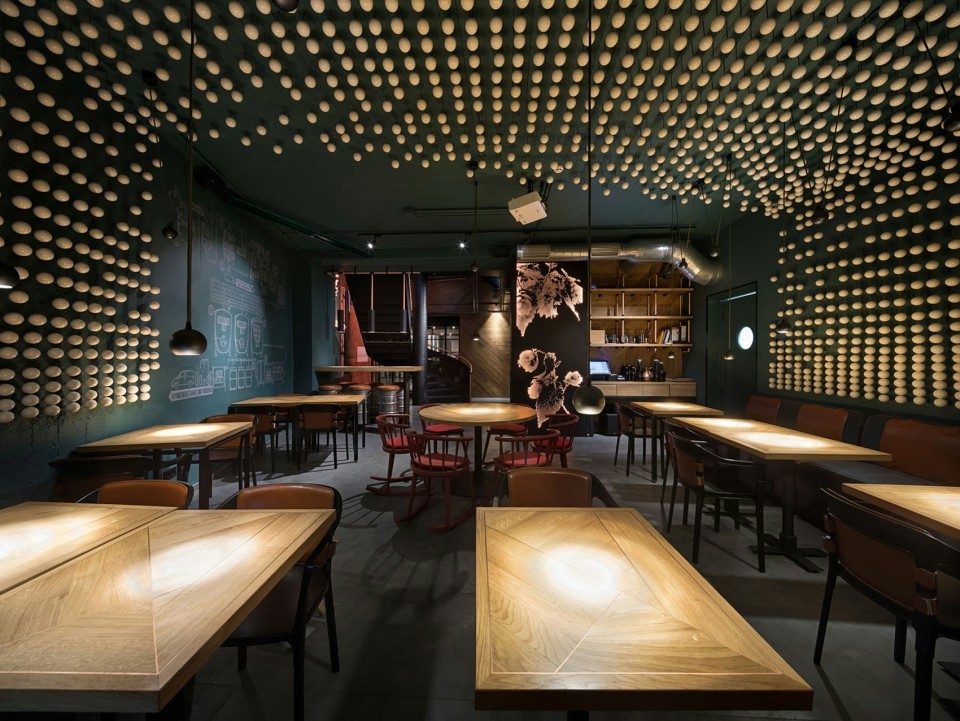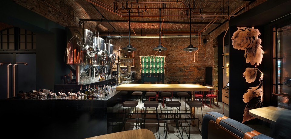 设计理念/浓浓的重工业风的啤酒馆,结合了科技与经典,突出了酒吧的工业感。除了享受新酿的啤酒,还可以看到啤酒酿造的过程,增强了顾客的体验感。墙面装饰富有科技感,呼应了酒吧的主题。白色陶瓷装饰象征啤酒泡沫,地下空间明亮丰富营造欢快的氛围。