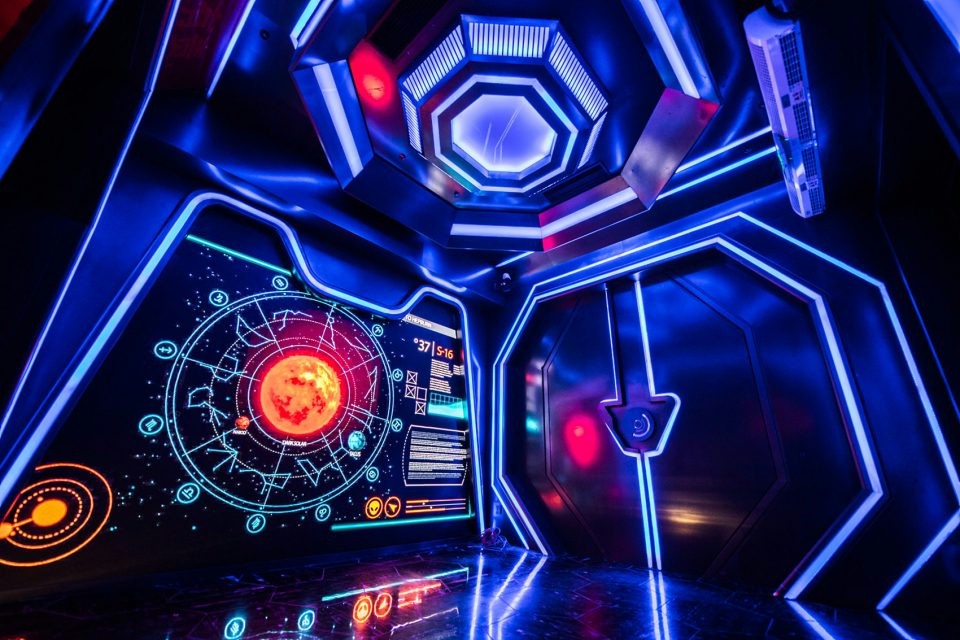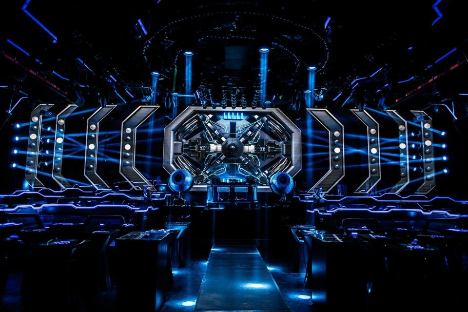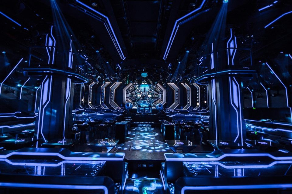 酒吧用“未来感”的方式呈现出来,设计师用科技来增强和用户的互动感,让消费者切实感受“未来”的魅力.未来主义风格主色调是白色,黑色,灰色,增强了空间感。背景墙上出现的数位字母让人有时空错乱的感觉。各种炫酷的灯光让人仿佛置身于好莱坞大片中。