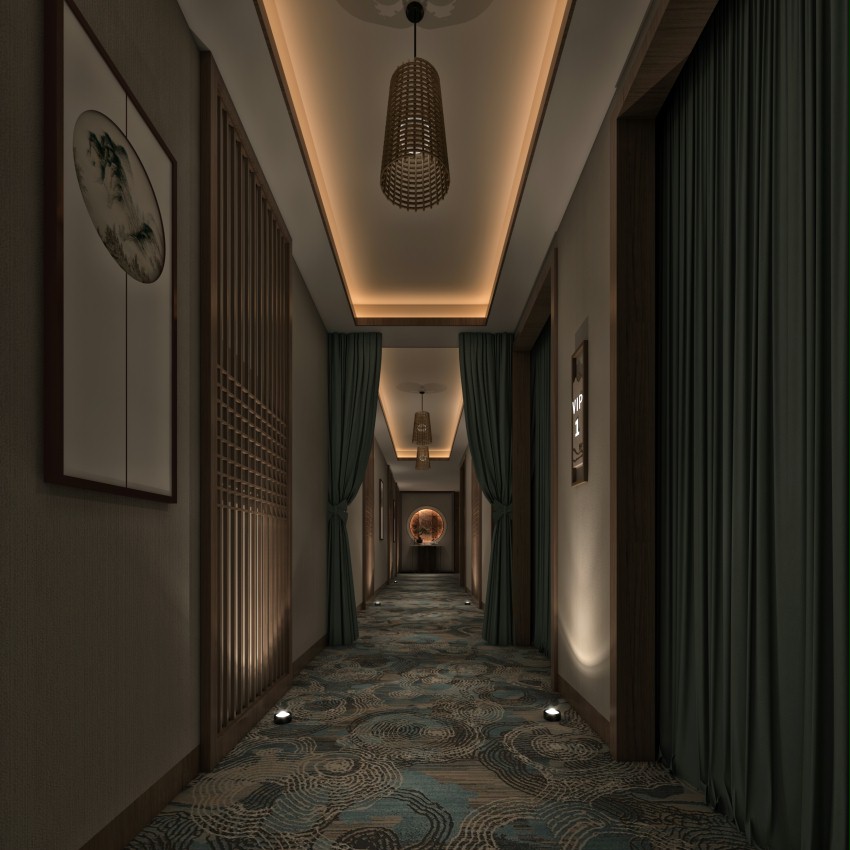 新中式美容养生店设计,项目位于上海虹桥区,邑空间为客户打造一体化养生美容店,新中式设计手法,波纹不锈钢板造型,灵动空间延伸层高,邑空间上海专业美容养生店设计公司